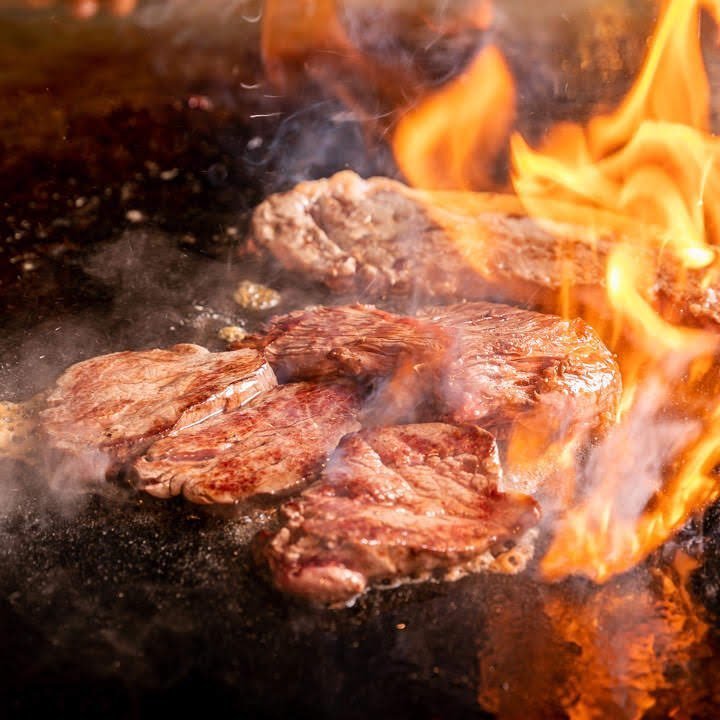 鉄板で豪快に調理するさまはまさに圧巻!